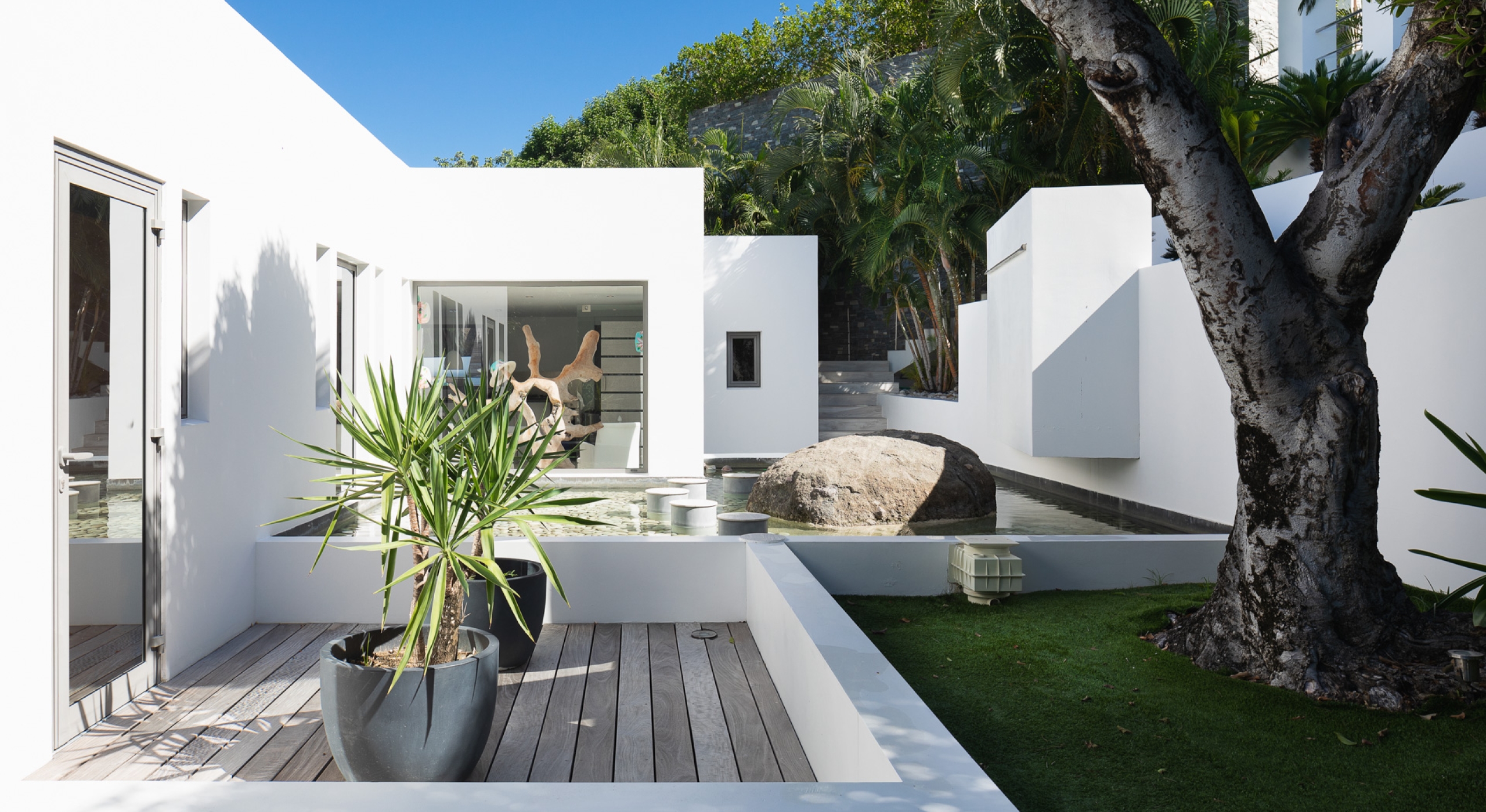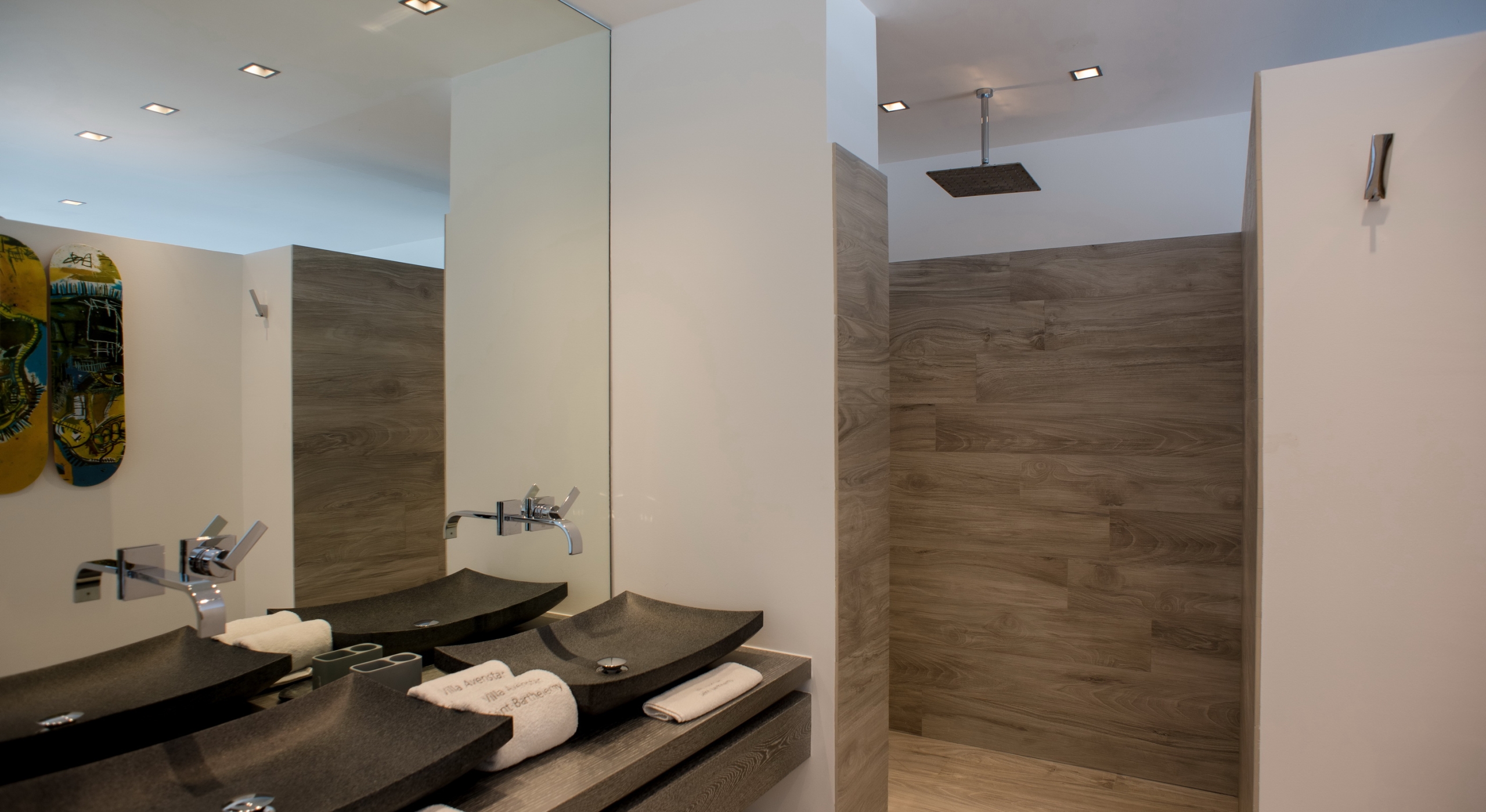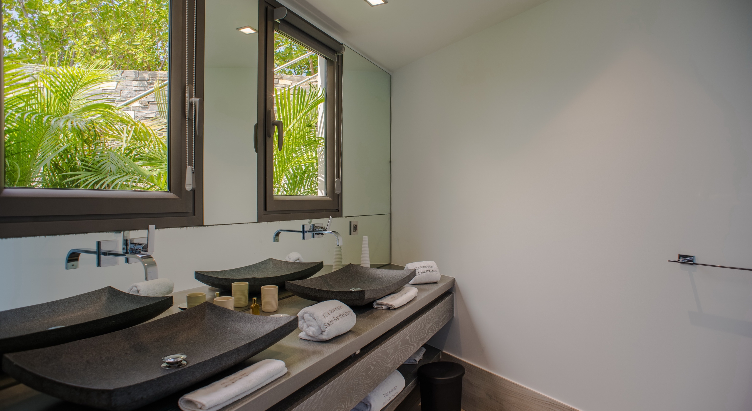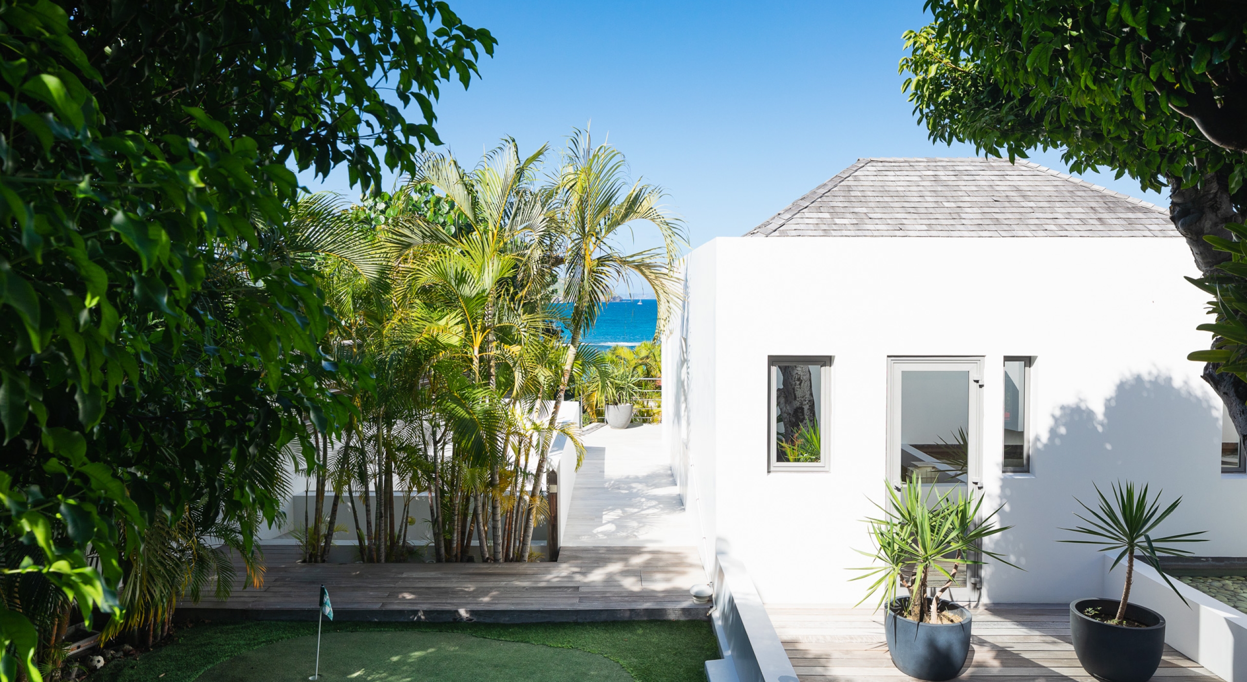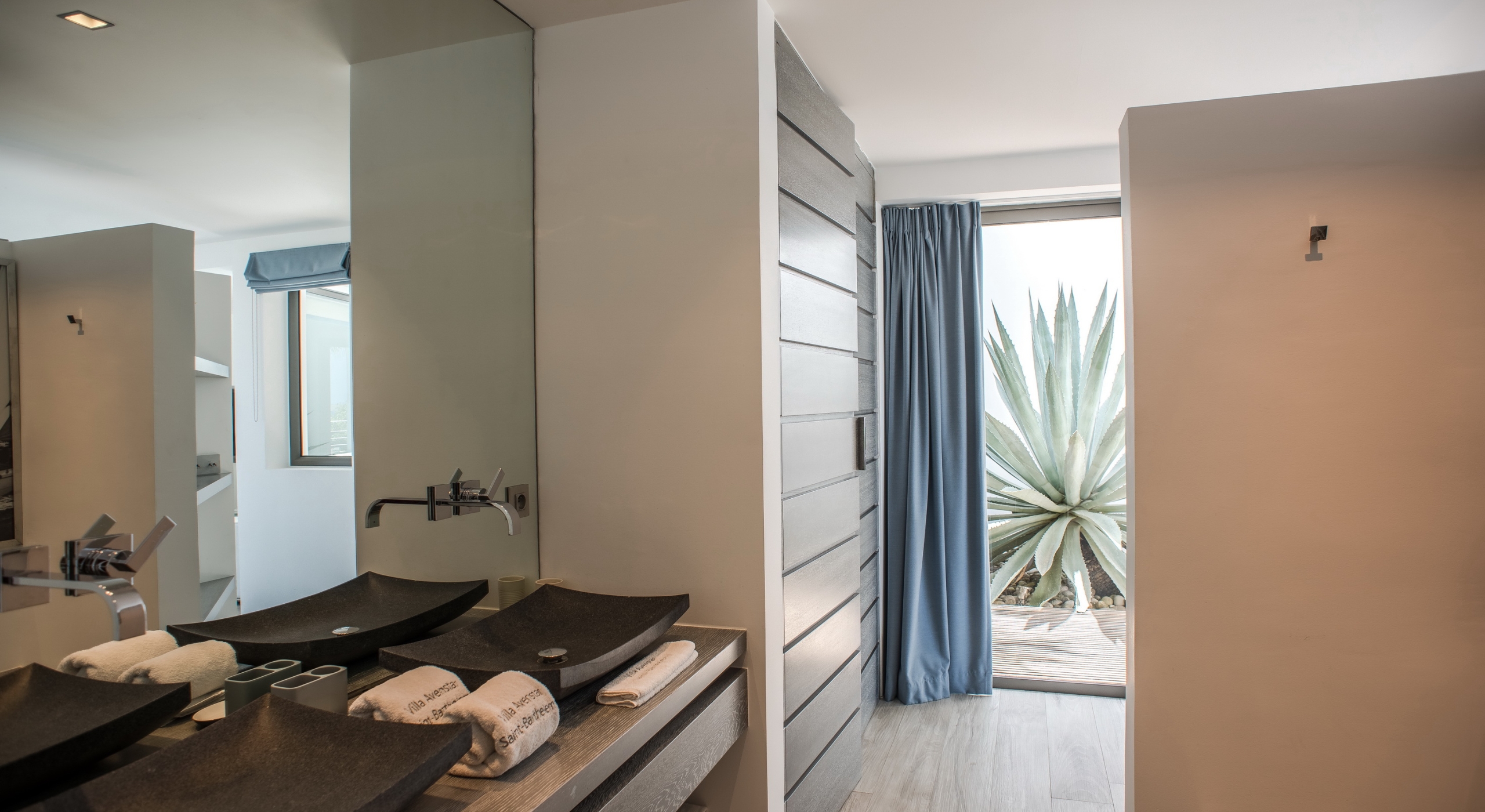 This contemporary chic villa has everything you could need for your next vacations on the island: a long heated infinity pool, a sunny terrace, large bedroom each facing the sea, a gourmet kitchen…