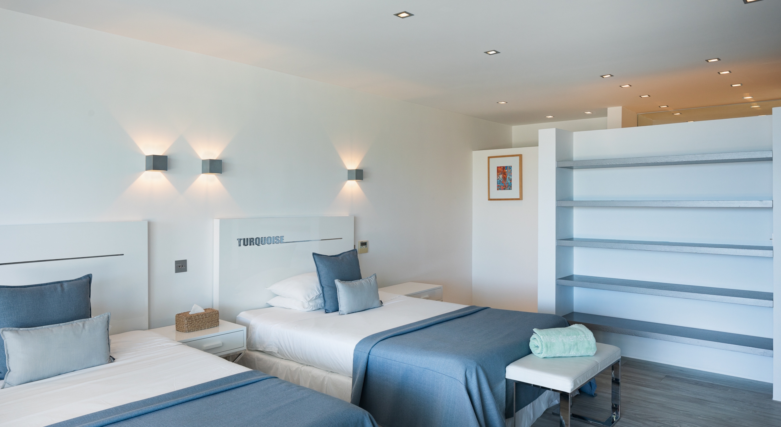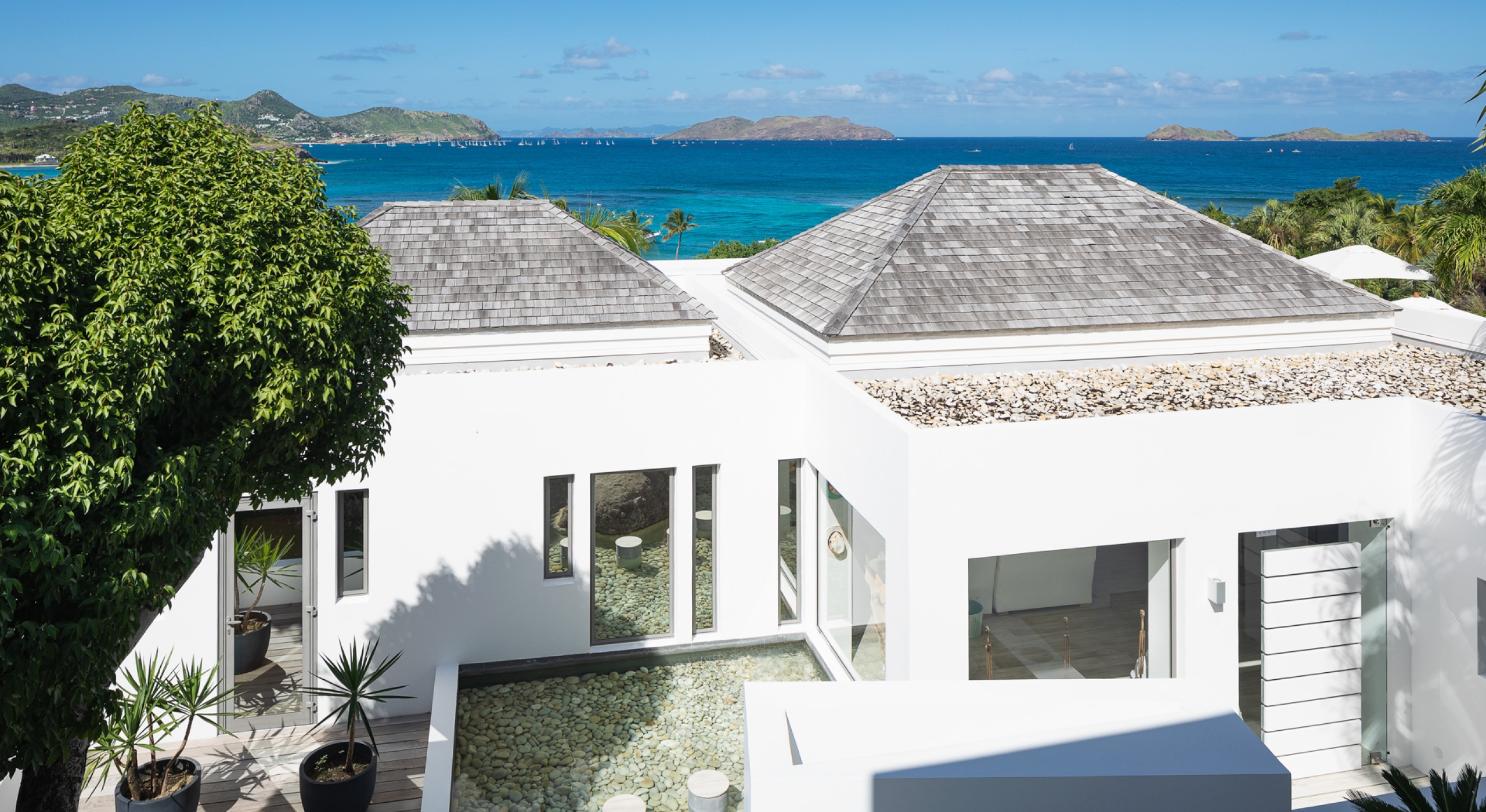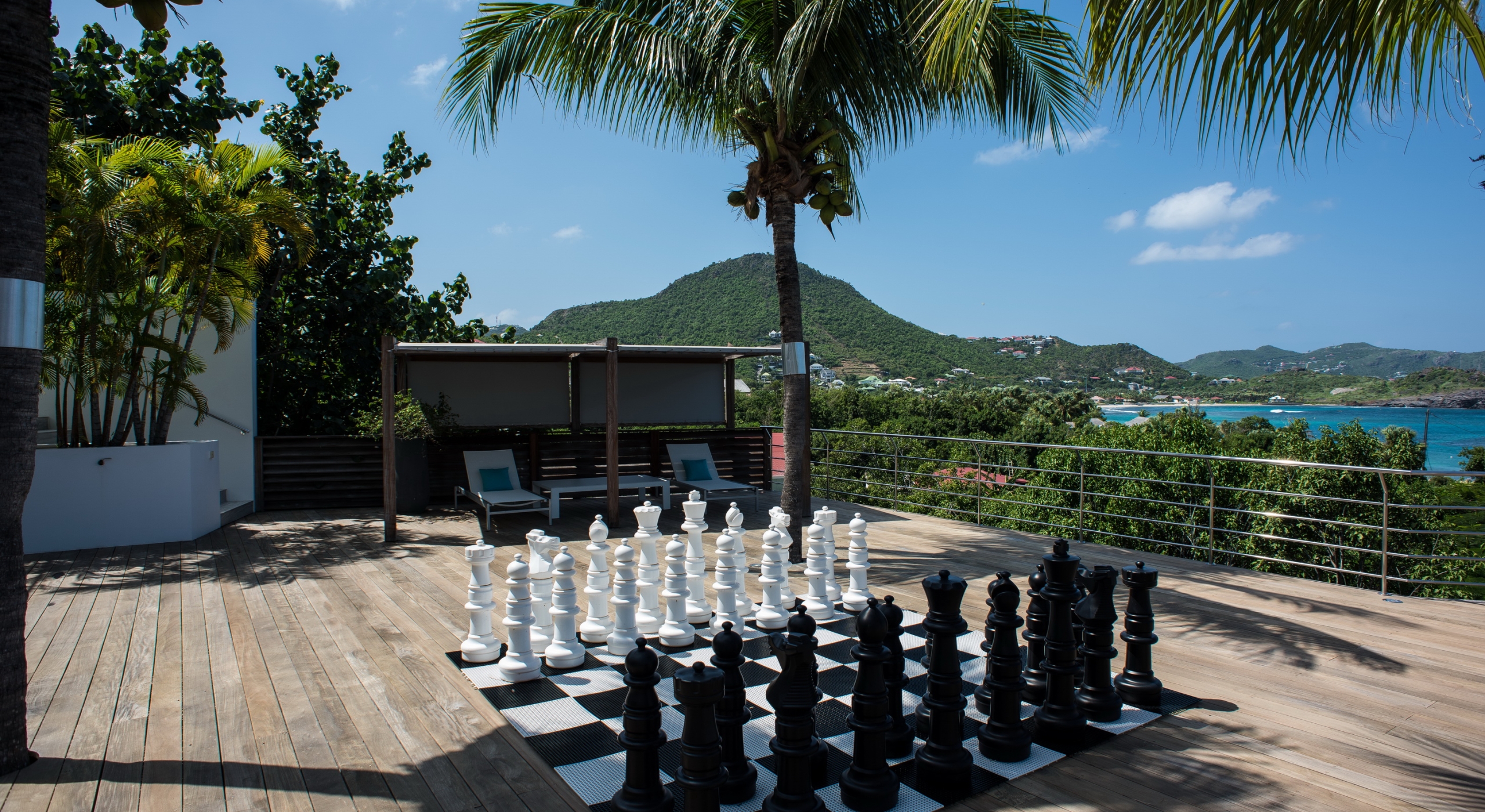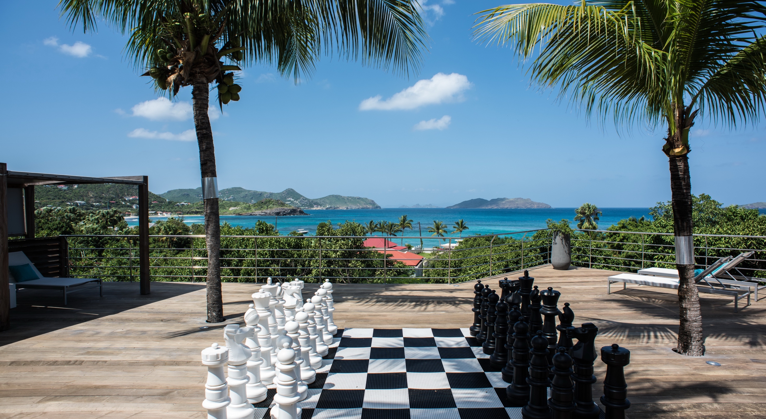 The view on the ocean and Lorient Bay with plenty of different blues is splendid. Its elegant decoration is making this villa a luxury one.